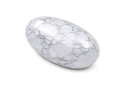 Le blanc marbré de la Howlite évoque le silence et la page blanche. Visuellement, elle agit comme un repère de pause : moins de stimulation, plus d’espace.