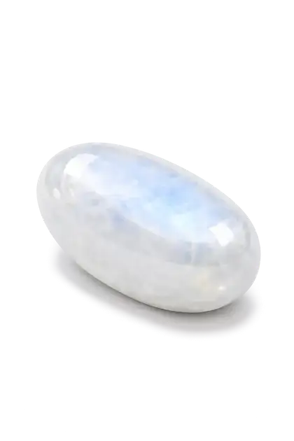 Le blanc nacré et les reflets mouvants de la Pierre de Lune évoquent la clarté nocturne et le changement. Visuellement, elle agit comme un filtre “douceur” : un repère qui adoucit la perception et invite à la pause avant l’action.